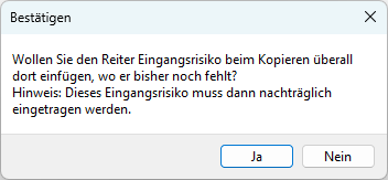 In diesem Register können die Sicherheits- und Gesundheitsschutzanforderungen aus dem Projekt übernommen werden, für das die Maschinenrichtlinie gegolten hat: In der Menüleiste Kopieren von ... > das Projekt unter der Maschinenrichtlinie markieren > Weiter > den Warnhinweis mit Ja bestätigen.