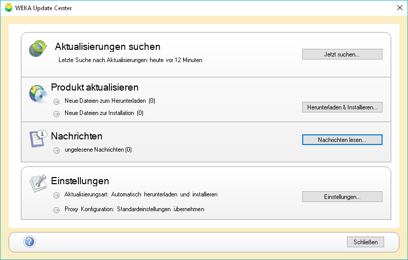 Das WEKA Update Center ist ein Dienst, der folgende Aktionen ermöglicht: