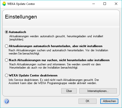 Das WEKA Update Center wird bei der Installation von WEKA Manager CE automatisch installiert.
