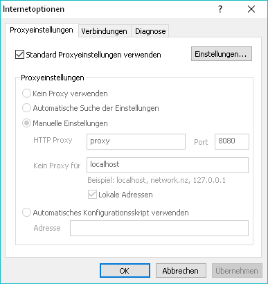 Für die Konfiguration der Internetoptionen sind entsprechende Kenntnisse erforderlich.