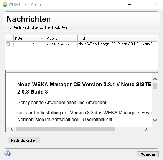 Mehr Nachrichten finden im Startcockpit von WEKA Manager CE: Hilfe > Startcockpit.