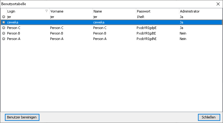 Benutzertabelle einsehen