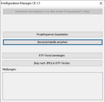 Vor dem Ausführen des Konfigurationstools muss WEKA Manager CE beendet werden, um eine Beschädigung der Datenbank durch gleichzeitige Benutzerzugriffe und ausgeführte Aktionen durch das Konfigurationstool zu vermeiden.