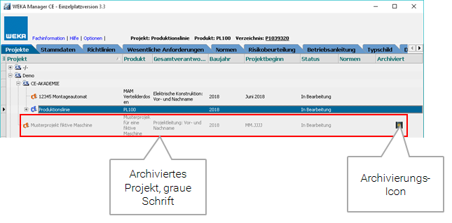 Sollten archivierte Projekte wieder bearbeitet oder kopiert werden, können diese restauriert werden.
