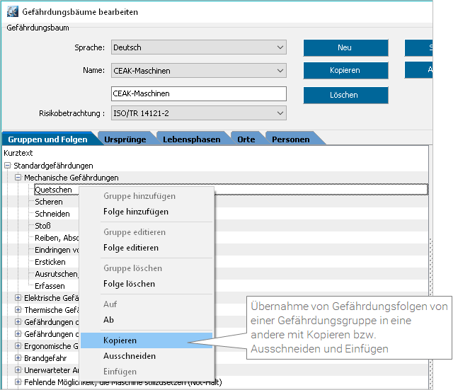 Jetzt: Beim Erstellen der Gefährdungsbäume können Gefährdungsfolgen von einer Gefährdungsgruppe in eine andere übernommen werden.