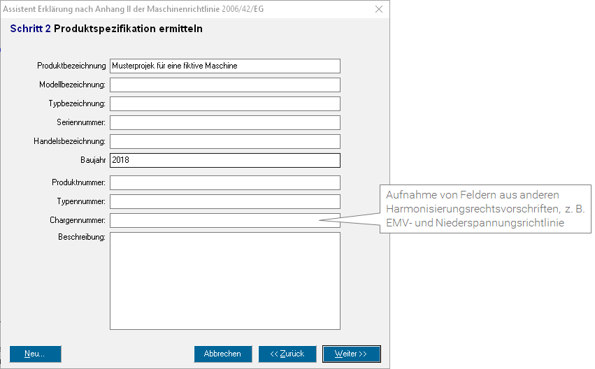 Jetzt: Datenfelder im Assistent für Konformitätserklärungen Schritt 2 wurden vereinheitlicht.
