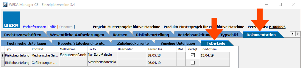 ToDo´s werden im Register ToDo´s gesammelt und übersichtlich aufgelistet: Register Dokumentation > Register ToDo´s.