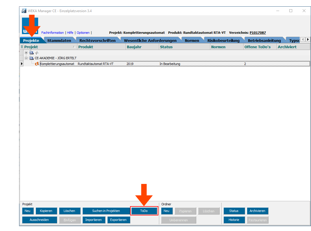 Die ToDo-Schaltfläche wurde zu allen Registern hinzugefügt, bei denen sie bislang nicht vorhanden war, z. B. im Register Projekte.