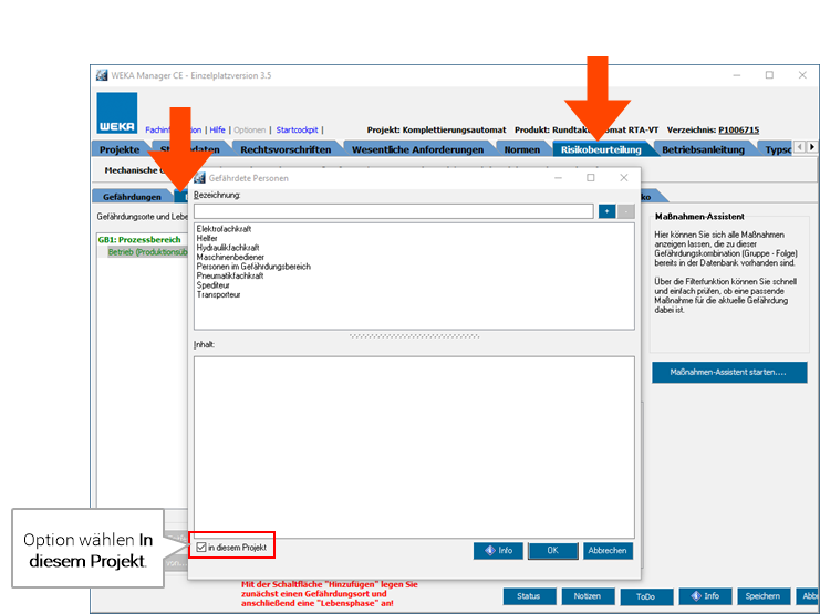 Im Abschnitt Gefährdeten Personenkreis beschreiben Liste mit Textbausteinen gefährdeter Personen öffnen: