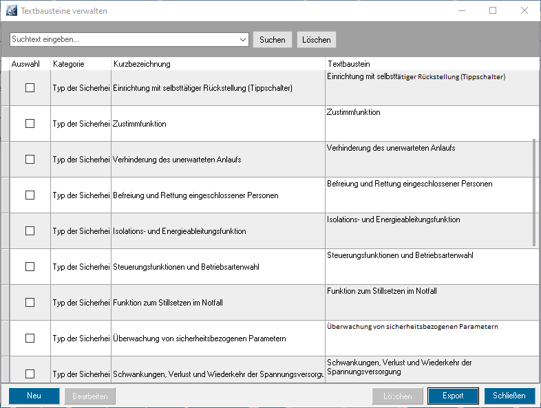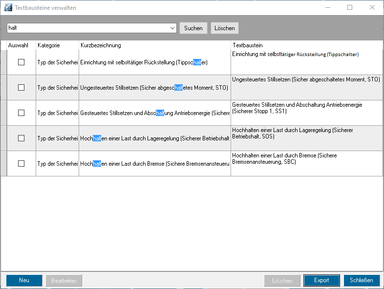 Suche in der Textbaustein-Bibliothek