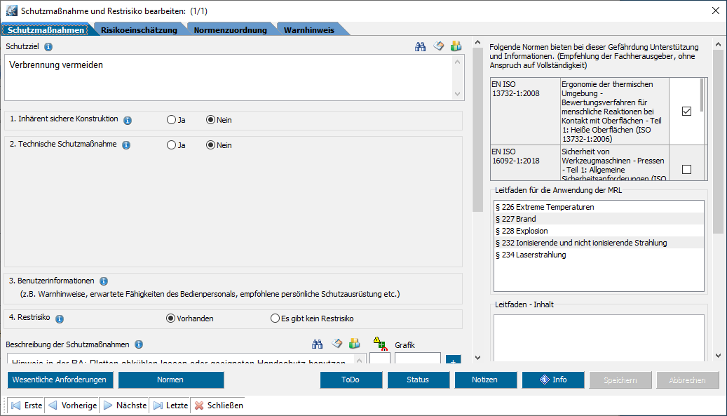 Register Risikobeurteilung > Schutzmaßnahmen.