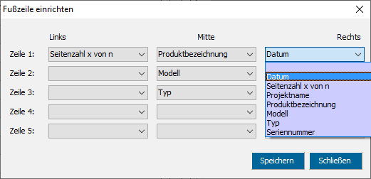 Das Festlegen der Inhalte für die Fußzeile umfasst folgende Schritte: