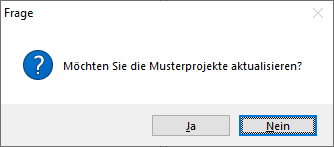 Die folgende Abbildung zeigt die Frage zum Aktualisieren der Musterprojekte.