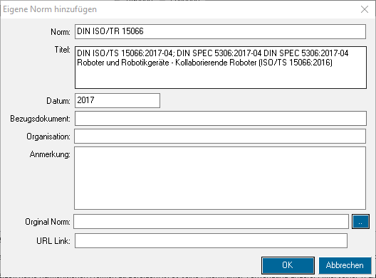 Der Dialog Eigene Norm hinzufügen öffnet sich.