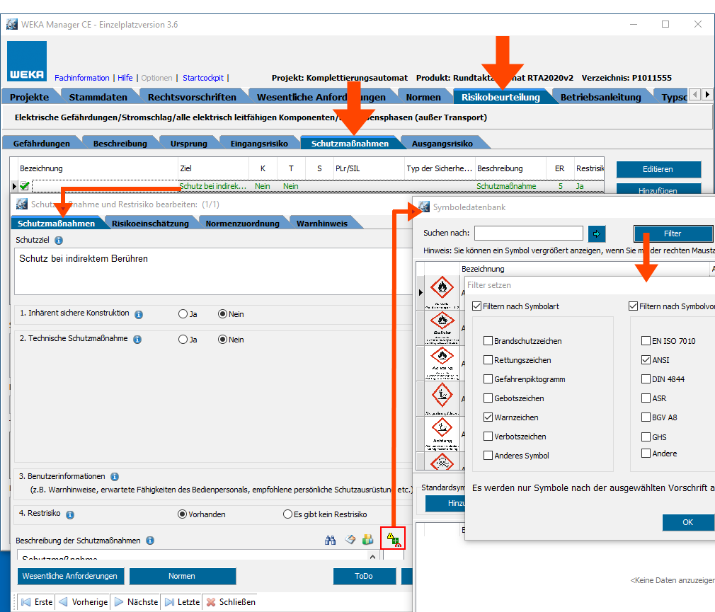 Die folgende Abbildung zeigt den Symbole-Katalog in der Risikobeurteilung bei den Schutzmaßnahmen.