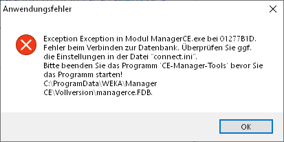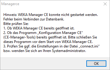 Beim mehrfachen Starten von WEKA Manager CE wurde bisher folgende Meldung ausgegeben.