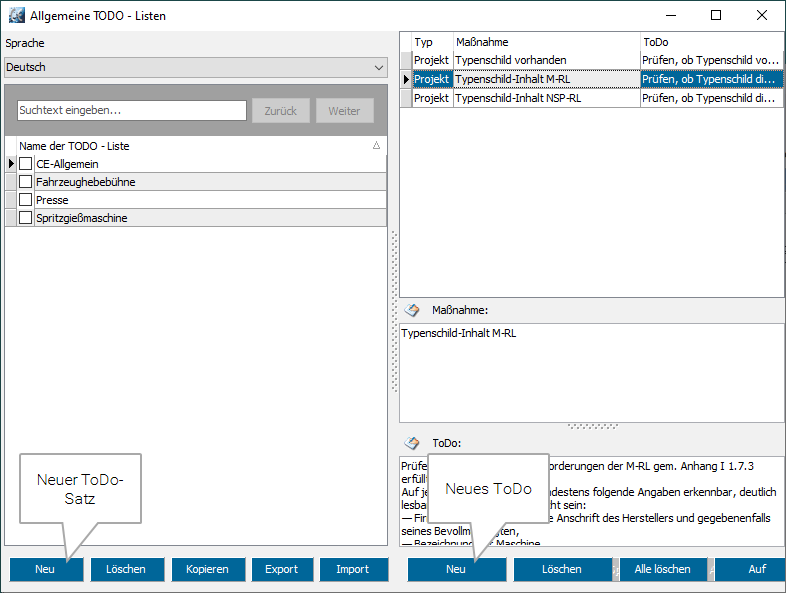 In der Auswahlliste Allgemeine TODOs einen ToDo-Satz wählen.