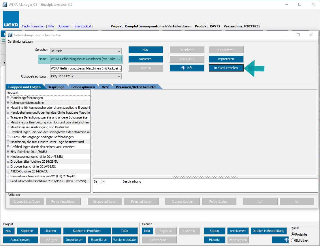 Ab Version 3.9 können Gefährdungsbäume z. B. zum der Zweck der Gesamtschau in Microsoft Excel exportiert werden, ohne im Gefährdungsbaum die Inhalte nacheinander wählen und öffnen zu müssen.
