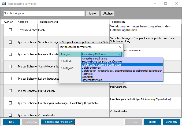 Alle Textbausteine der gewählten Kategorie werden formatiert.
