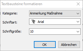 Ab Version 3.9 kann der Inhalt von Textbausteinen formatiert werden. Die Formatierung gilt global für die gewählte Textbaustein-Kategorie in Bezug auf Schriftart und Schriftgröße.