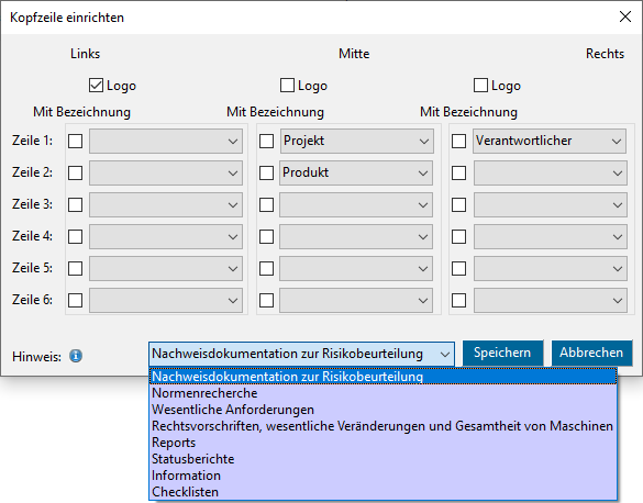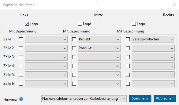 Der Dialog Kopfzeile einrichten öffnet sich.