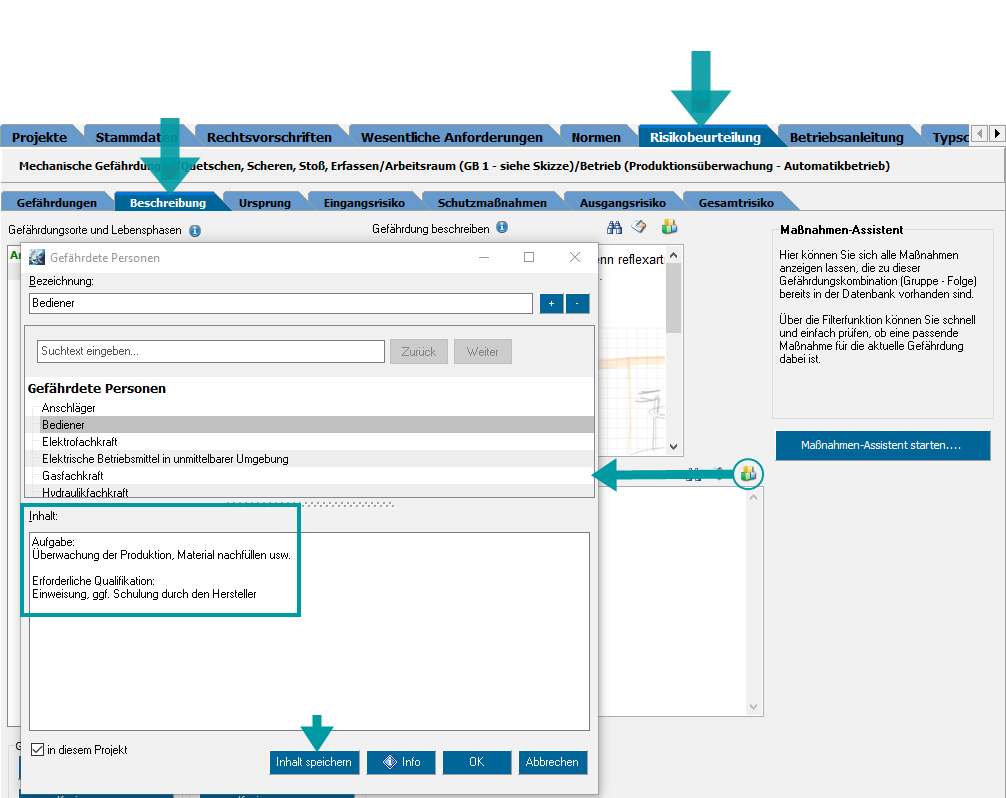 Bislang wurde der Gefährdungsbaum für die Risikobeurteilung beim Anlegen eines Projekts im Register Projekte gewählt.