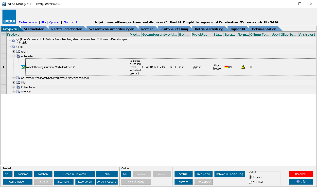 Die folgende Abbildung zeigt den Beenden-Button, der ausschließlich im Register Projekte platziert ist.