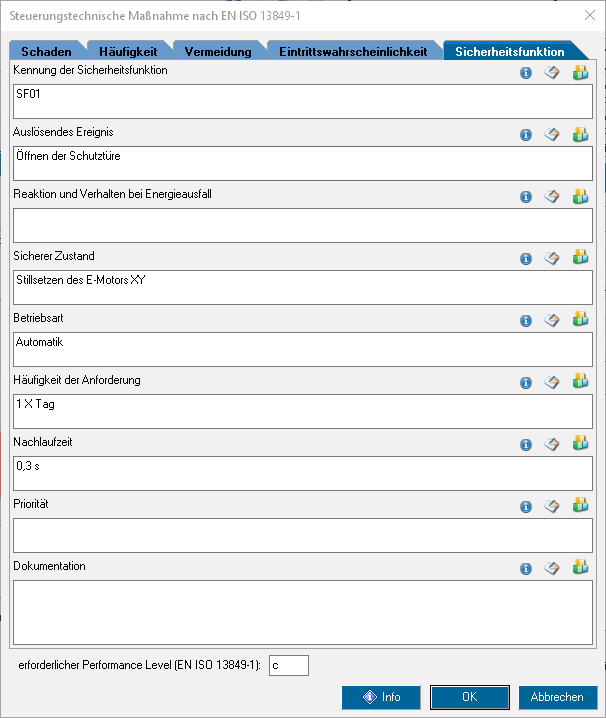Bislang konnten Sicherheitsfunktionen gewählt und der jeweilige PLr oder SIL festgelegt werden. Allerdings konnten die Sicherheitsfunktionen nicht im Detail spezifiziert werden. Die Spezifikation musste dann außerhalb von WEKA Manager CE vorgenommen werden.
