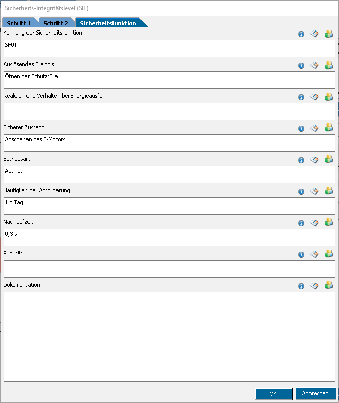 Die folgende Abbildung zeigt neue Register Sicherheitsfunktion bei der Ermittlung des SIL.