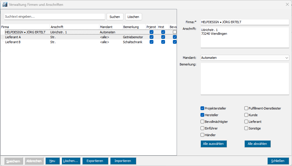 Der Dialog Verwaltung Firmen und Anschriften öffnet sich.