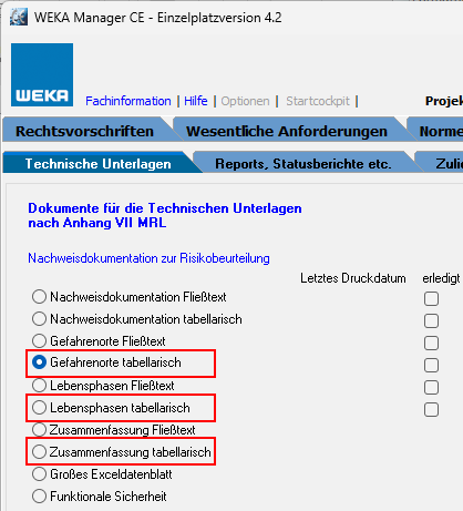 Folgende Nachweisdokumente können zusätzlich als Excel-Datei ausgegeben werden: