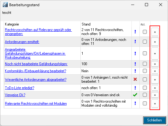 Ab Version 4.3 kann zu jeder Kategorie im Projektstatus optional eine Begründung hinterlegt werden.