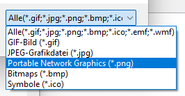 Bilder können im .PNG-Dateiformat in Editoren eingefügt werden: