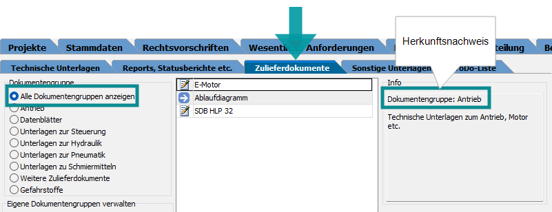 Bis Version 4.3 zeigt die Option Alle Dokumentgruppen anzeigen alle Dokumente an, die hinterlegt oder verlinkt wurden. Allerdings gibt es zum jeweiligen Dokument bzw. Link keinen Herkunftsnachweis. D. h., es ist nicht ersichtlich, welcher Dokumentengruppe das Dokument bzw. der Link zugeordnet wurde.