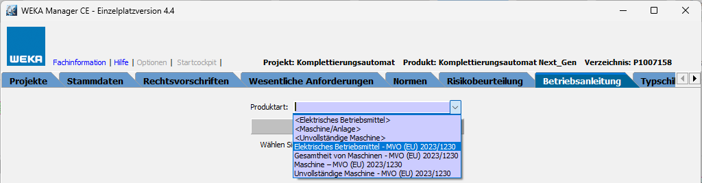Die überarbeiteten Betriebsanleitungsvorlagen stehen parallel zu denen der Maschinenrichtlinie 2006/42/EG zur Verfügung und zwar im Register Betriebsanleitung. Die überarbeiteten Betriebsanleitungsvorlagen sind erkennbar am Zusatz MVO (EU) 2023/1230.