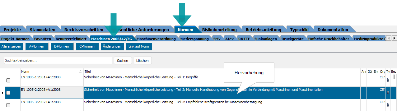 Zugriff auf die Listen mit harmonisierten Normen: Register Normen > Unterregister zur jeweiligen Rechtsvorschrift.