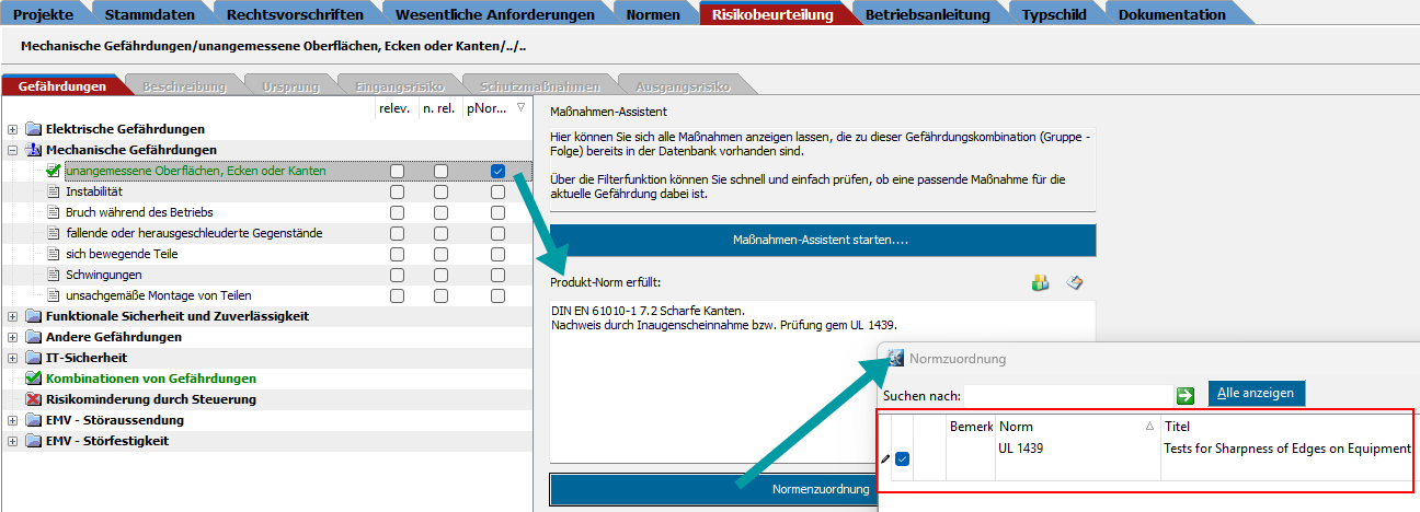 Die folgende Abbildung zeigt die Normenzuordnung zu einer Gefährdungsfolge, die auf pNorm erf. gesetzt wurde.