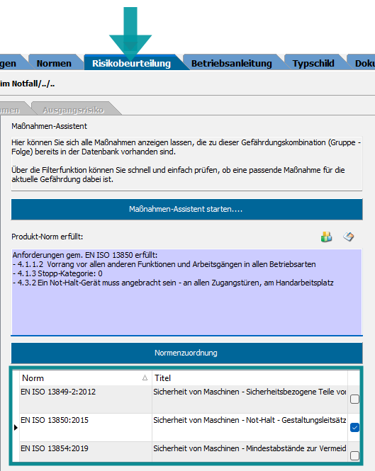 Mit Version 4.5 wurde im Zusammenhang mit der Risikobeurteilung die Option Produktnorm erfüllt eingeführt.